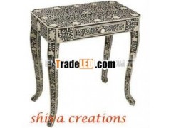 Indian bone furniture 1)Quality assurance 2)On time delivery3)Reasonable priceThe Shiva Creations company offers the best of Indian bone inlayfurniture in the online and offline wooden market. Bone furnitureis combination of MDF, solid wood with camel bone work on it comesto you after going through the hands of well skilled craftsman.